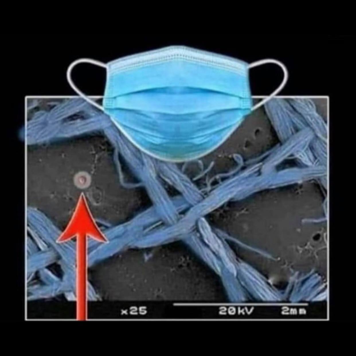 But what if there is a killer virus and the mask is preventing you from getting it or spreading it? People will choose to wear it, because this is what we are seeing all around us. Even when it wasn’t recommended or mandatory yet, people were already wearing it. Although, I think many did it without knowing the risks. I think people who are wearing one now, are mostly just scared, even though many are saying that they are not scared. They say that they are doing it because it’s the rule and they want to just be careful and do the right thing. I totally understand this, but what if I told you that the masks do not work? It happens that a virus is so small, that it can easily go through the fabric of your mask. Masks are made to prevent big drops of saliva to spill. But a virus can easily just pass through the mask (see picture below).
