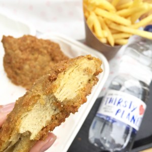 was it! It tasted amazing. It’s not only the structure, the crispy outside or the taste itself that was good. They managed to get everything right! And with everything I really do mean everything.. as the sauce was yum and the fries were phenomenal too. They taste like the McDonalds fries, but then even better. I was very hungry, but after finishing the 2 pieces of heavenly seitan and my portion of fries I was very full. But not like I used to feel after KFC, I didn’t feel disgusting at all. A thing I really like as well, is the fact that it’s clear they do it for the animals. It feels really nice and really gives an extra good feeling.