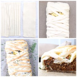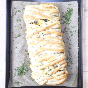 Only 4 more nights until Halloween! I’m not a huge fan of this celebration myself, but I do like to create recipes for it, haha! And I’m sure if you’re really into it, you want to eat something that adds to the theme. Especially with children it’s a nice thing to do. This recipe is not only fun to make and to look at, but I tested it on children and they love it. If your children are a little bit older, then they will be happy to help you too. The process is rather fun, especially wrapping it up in the end. You can serve this with several veggies or a salad. For some more Halloween recipe inspiration, go check out last years recipe: Creepy Tasty. Have fun!