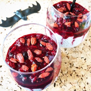 It’s almost Halloween!! Notttt really my thing, but I do really like to create recipes with a theme. There are a lot of Halloween recipes that are everything but healthy. That’s why I wanted to create something that looks scary, but is not scary to eat, haha! I really like the outcome, because I love chia pudding and in combination with the fruit and the cinnamon it’s so tasty. You can use any plant based yogurt, but I used the plain version of the Coconut Collaboration. I love this yogurt anyway, but especially in this recipes it just works really well.