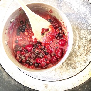 -Put the fruit in a sauce pan and warm it on medium heat, until it starts to be like a sauce. Keep stirring. (For frozen fruit it’s about 5 min. For fresh fruit about 3 min.)