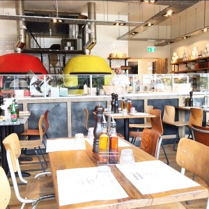 Apart from the pizza and some small things (olives and bread) there aren’t that much vegan options, but in their defence, they do not have a very big menu. They do have one desert for vegans though, what is the very familiar vegan dessert: the sorbet. I didn’t try it though and I do appreciate that at least they have something. The Franco Manca in Westfield is a very beautiful restaurant I must say. Because of the very big windows from floor to ceiling, it’s super light and they have 2 huge pizza ovens (the red and the yellow one, here on the picture ^) in their open kitchen. I also really like their interior, it’s very industrial and it has high ceilings. I also really like the chairs, they really add to the style.