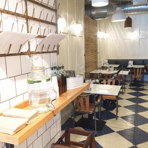 Minkies Deli is basically across the road from me. It looks very nice, with the cart with oranges in front of it, but I never went here. Being so close to my flat just makes me eat and drink in my own house and I won’t go out as fast, unless I’m far away. Though I was very curious about this place. My boyfriend went to get coffee here one morning and brought some nice breads for me (yes, he’s so thoughtful). The breads were very tasty and the cups look very nice. I really like their logo, a straw in the shape of an -M. I went on a beautiful sunny day to have brunch (I had a green smoothie in the morning and it wasn’t lunchtime quite yet..).