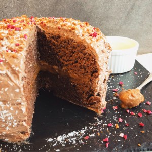 It is true.. I’m 30 now! I still can’t believe it. It’s not like I can’t handle it, it’s more that I just can’t believe that I’m on this earth for 30 years already. Time flies. It makes me feel grateful to have reached this beautiful age, but I’m also living in a midlife crisis for the past 10 years already, haha! I always start overthinking it all and start panicking about everything I didn’t do yet in my life. I’ve got so many plans and there is just so little time. Now and again I just need a reality check though and I do realise I’ve done so much to be grateful for: I saved a pig (very important), started a blog a few years ago, converted a van (+ living in it) and I’m almost finished my nutritionist course. These are 3 things that I really really wanted to do in my life and were all on my bucket list. I can only imagine that, because I’ve done these things, life can only get better. Anyway, I thought it definitely deserved a cake and so I made a double cake for my 30th, with a nice filling in the middle. It’s an easy recipe, but all together it takes bit of time though, because of the cooling dow process. I hope you will love it though, just as much as I do (I’m actually having a piece whilst typing this.. YUM!).