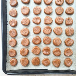 -Divide the dough into 6-8 pieces and flatten them (until they’re about 1/2-1 cm) on the (with baking paper covered) tray. Leave 3-4 cm between each biscuit, because they will go a little bigger.