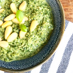 This is one of my most satisfying recipes. Pesto is something you can use in so many dishes, fresh herbs are super healthy and you can adapt the recipe the way you want it. You can add a little bit more garlic, lemon juice or oil.. whatever you prefer or you can just leave it the way it is. I like it the best like this, it’s the right balance for me. I love to make pasta pesto with it, add it on a pizza, a sandwich, mix it into some mayonnaise or use it as a dip. You can toast the pine nuts and the walnuts for some extra flavour, but you can also just use them straight from the packet. After making it you can keep it in the fridge for a few days.