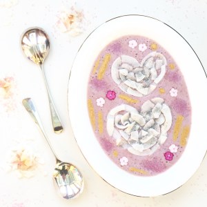Only 5 more nights until the day of love! Do you have a Valentine (yet)? Are you going to do something special? Last year the recipe ‘Soulmates‘ was a great success, so I came up with another Valentine’s recipe for this year. What is more romantic than sharing? Because isn’t love all about sharing? Sharing your thoughts, your happiness, your pain, your smoothie bowl.. Yes! Start Valentine’s Day as romantic as can be, with this lovely pink smoothie bowl to share! You can decorate it the way you like it.. I let the kids help me with the decoration of mine and that meant an overdose on edible glitters, haha! Oh well.. is there something as too much glitter? Not according the 3 year old girl I look after! Everybody who makes one of my recipes for Valentine’s Day will get a shoutout on my Instagram! Don’t forget to tag me, so I can see your creation. Have a lovely Valentine’s Day!